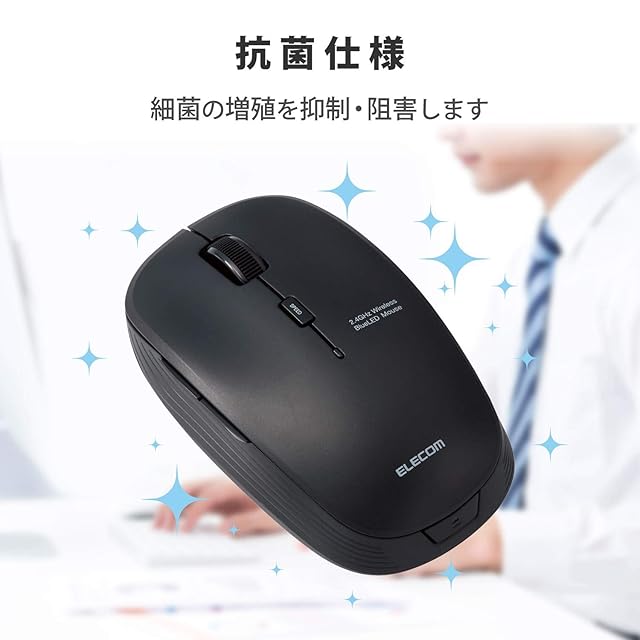 マウスのクリック時のカチカチ音がしない静音スイッチを採用し、カフェや図書館など音が気になる場所でも使えます。