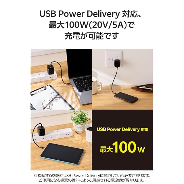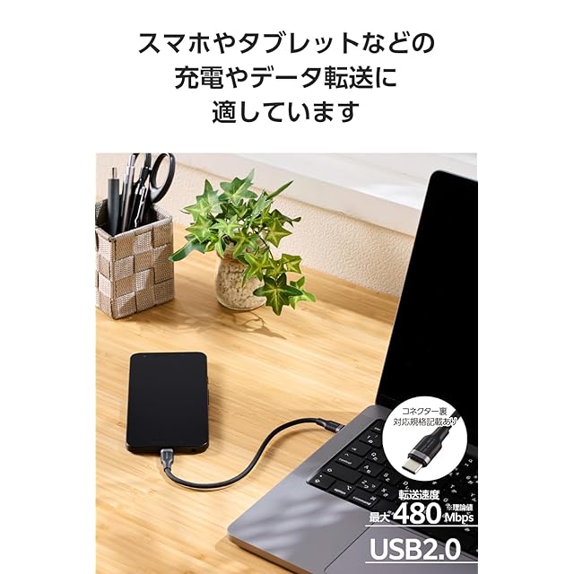 スマートフォンもパソコンも、これ1本で高速充電。USB2.0、USB Power Delivery(最大100W)対応のUSB Type-C(TM) - USB Type-Cケーブルです。なめらかな手触りで、やわらかく扱いやすいシリコン素材を採用しています。
