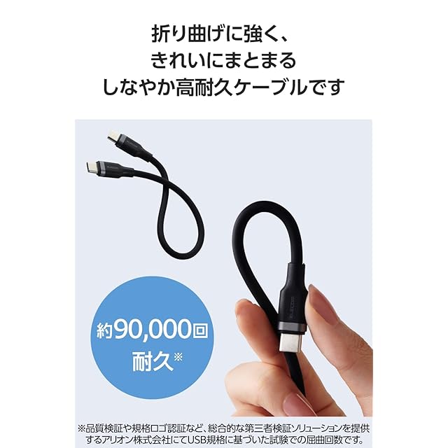 約90,000回の屈曲に耐えられる優れた耐久性を実現したケーブルです。