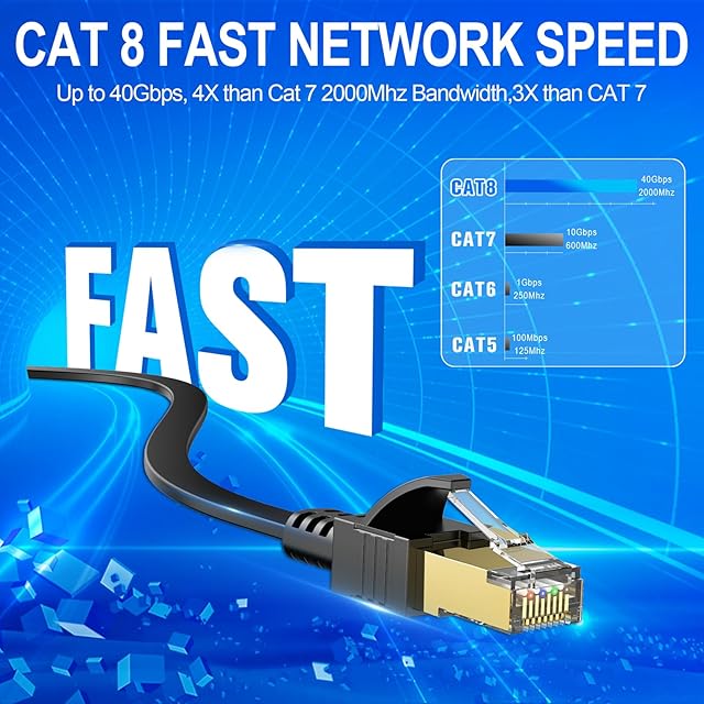 高速:Cat 8イーサネットケーブルは、最大2000MHzと40Gbpsのデータ転送速度をサポートし、サーバーアプリケーション、クラウドストレージ、オンラインHDビデオストリーミング、ゲーム用の高速データ転送をサポートしています。