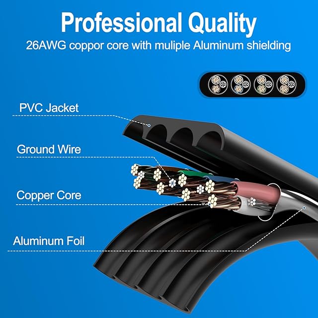 優れた抗干渉:Cat 8インターネットケーブルは、4つのシールドホイルツイストペア (U/FTP) 純銅コア、金メッキコネクタで設計されています。 Cat 7 ネットワークイーサネットケーブルと比較して、ワイヤーのねじれが追加されたシールドと品質の向上により、クロストークやノイズからの保護が向上し、データ転送の信頼性と精度が向上します。