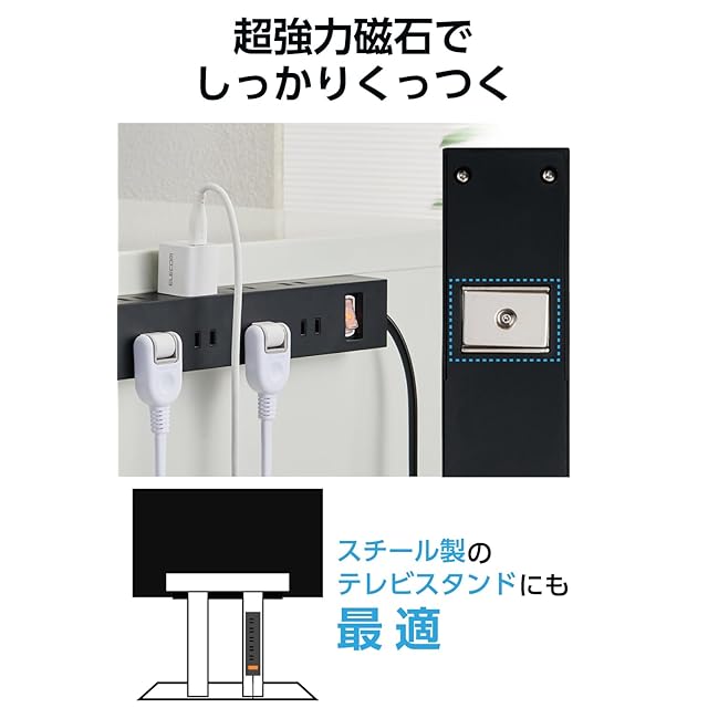 底面には超強力なネオジム磁石を配しており、スチール製の家具や事務機などにしっかりと固定できます。