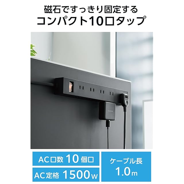 差込口を2面に分けて配置することで、10個口でありながらコンパクトになっています。