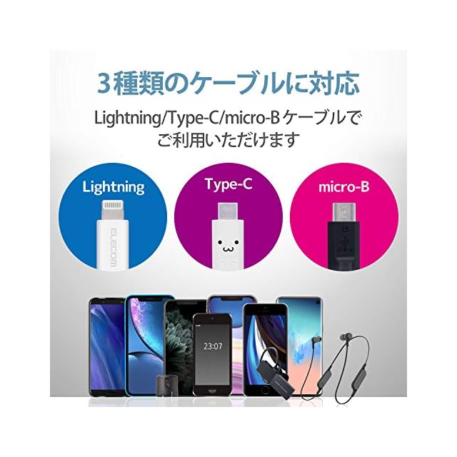 スマートフォン等に付属もしくは対応する充電用USBケーブルを使用して充電可能です。※本製品に充電用ケーブルは付属していません。