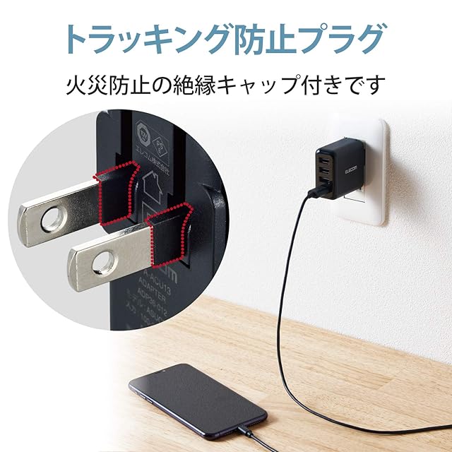 エレコム(ELECOM) USB コンセント 充電器 合計24W USB-A×4 【 iPhone ( iPhone13シリーズ対応 ) / Android / タブレット 対応 】 ブラック MPA-ACU13BK | つむぎ屋