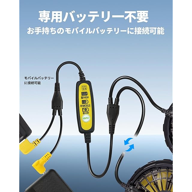 【※ご注意 】:このケーブルは、設計電圧が12Vのファンにのみ適しています。ファンの設計電圧が 12Vを超える場合(15V、17V、19V、21Vまたは以上の電圧)、このケーブルは使用できません。そうしないと、風量が非常に小さくなるか、正常に使用できないことがあります。※:モバイルバッテリーで給電する場合、出力電流は2Aまたは以上に達するべきです。