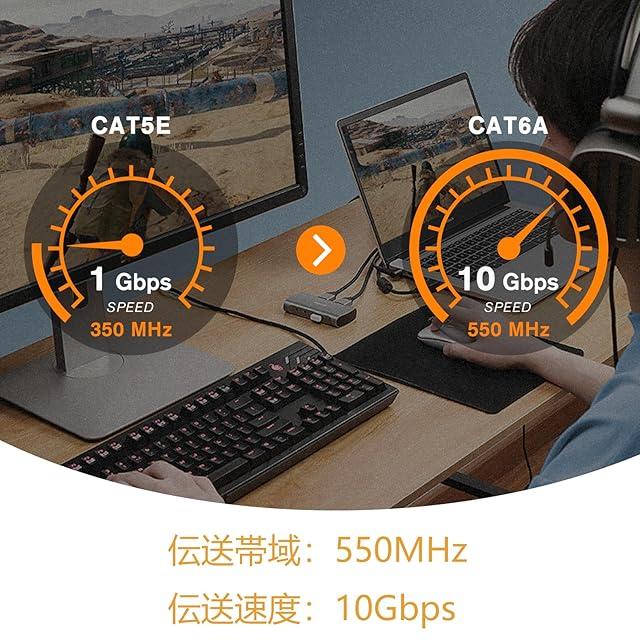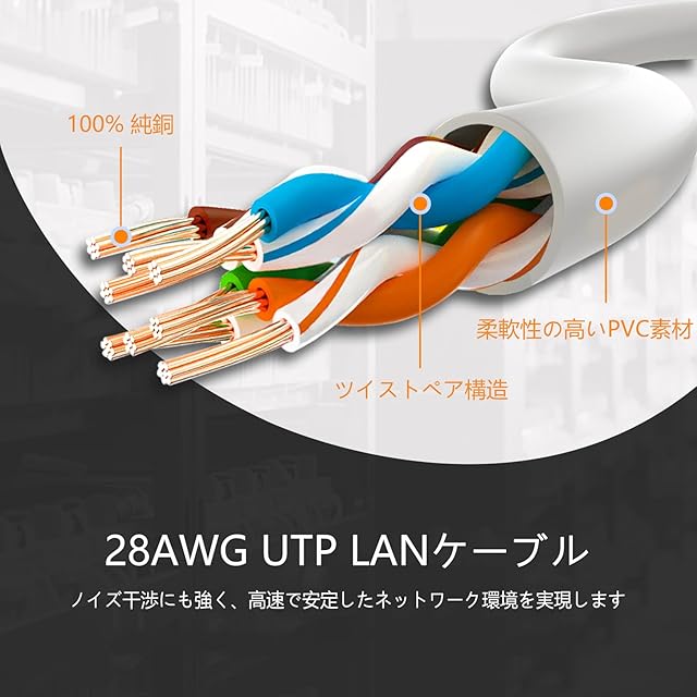 高速らんけーぶる:CAT6Aイーサネットケーブルは、最大10Gbpsのデータ転送と550MHzの帯域幅です。 ノイズ干渉にも強く、高速で安定したネットワーク環境を実現します。