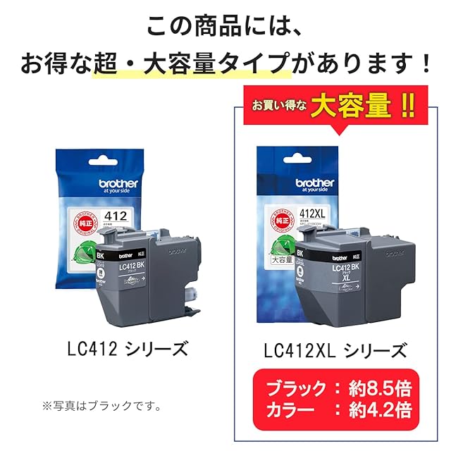 ブラザー純正インクは製品本体の性能を十分に発揮するために研究を重ね、開発されています。非純正インクをお使いになりますと製品本体の性能を十分に発揮できないだけでなく製品本体を損傷させる可能性がありますのでご注意ください。