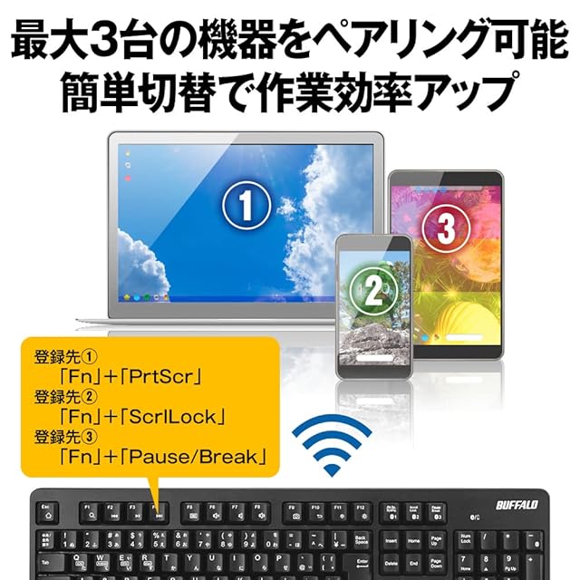 バッファロー Bluetooth5.0 対応 フルキーボード Windows/Mac/iPadOS/iOS/Android/PS4 テレワーク リモート 在宅 ブラック BSKBB105BK | つむぎ屋