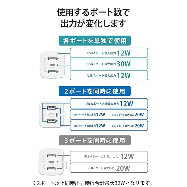 ※2ポート以上同時出力時は合計最大32Wとなります。