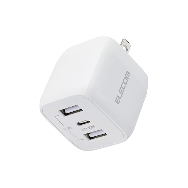 エレコム 充電器 Type-C 3ポート USB-C×1 USB-A×2 32W USB PD対応 折りたたみ式プラグ GaN採用 【 iPhone 16 15 iPad Macbook Air など対応】 ホワイト EC-AC4032WH | つむぎ屋