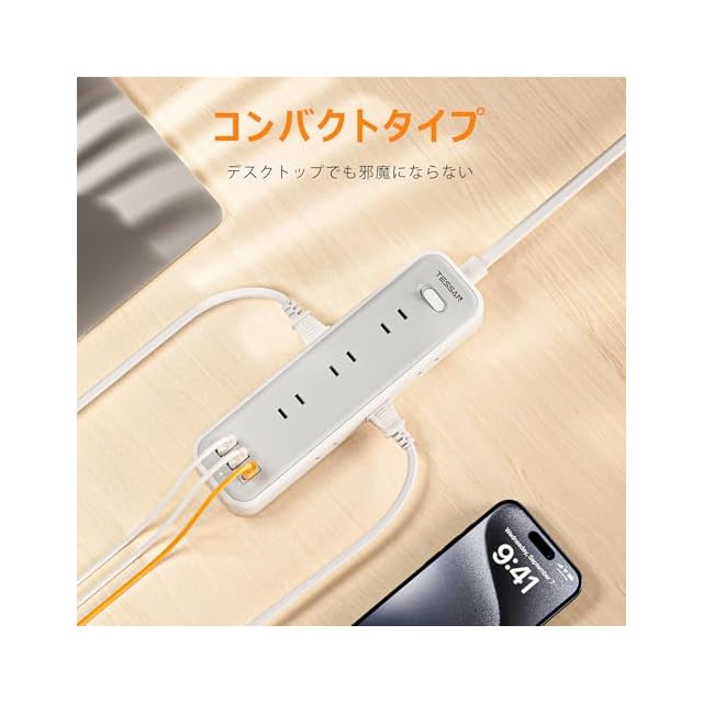 「一台12役のusb 電源タップ」:9個AC差込口に加え1個USB-Cポートと2個USB-Aポートを搭載します。ACコンセントで複数の家電を接続しながら、USBポートでお使いのUSB機器を充電できます。家やオフィスに複数の電子機器に充電したい場合、これ一つのusb電源タップがあれば、十分です。