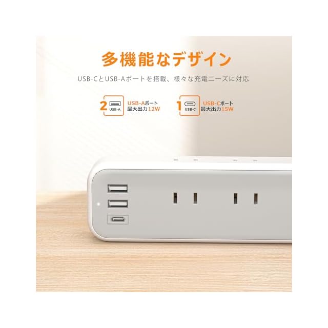 「一台12役·電源タップ」:コンセント差込口9口に加えUSB-Cポート1つとUSB-Aポート2つを搭載します。ACコンセントで複数の家電を接続しながら、USBポートでお使いのUSB機器を充電できます。家やオフィスに複数の電子機器に充電したい場合、これ一つのusb電源タップがあれば、十分です。
