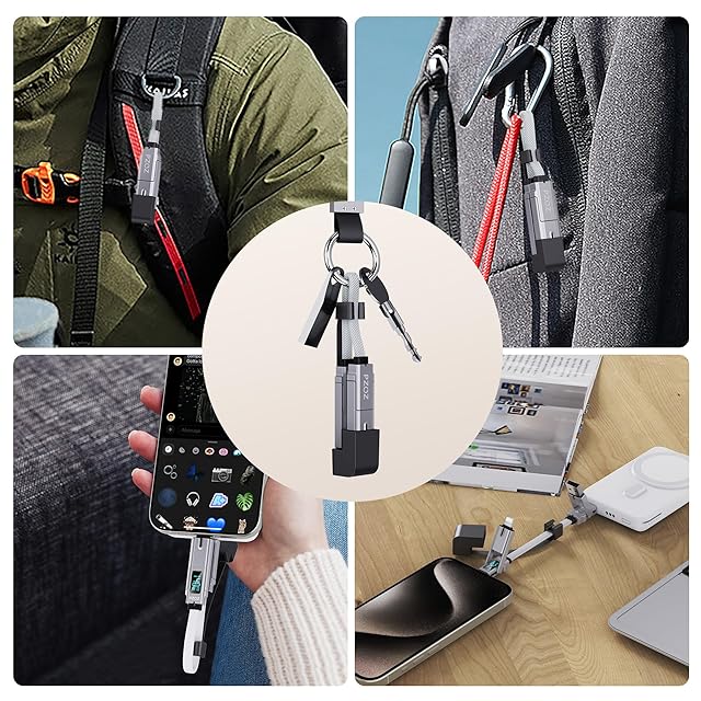 【キーチェーン充電器】 キャップデザインを使用すると、頭を簡単にスナップしてキーリングやバッグに掛けることができます。
