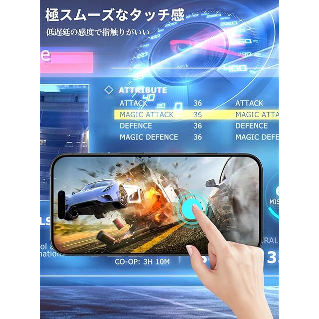 【特殊コーティング加工】保護フィルムは先端コ一ティングにより撥水撥油と指紋防止機能があり、長い時間スマホを使ってもスムーズなタッチ感を保てます。手汗・水滴・油汚れなどが付着しにくいですので、爽やかな手触り感ができます。