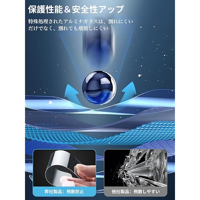 【9H旭硝子製保護フィルム】一番の保護性能を提供するために、このスマホ保護フィルムは業界一番の9H硬度の旭硝子素材を採用しております。日常利用中で万が一スマホ落下するなどになってしまえば、保護フィルム貼り付けられては最大限にカメラレンズを保護できます。フィルムが割れてもガラス破片が飛散することを防げます。