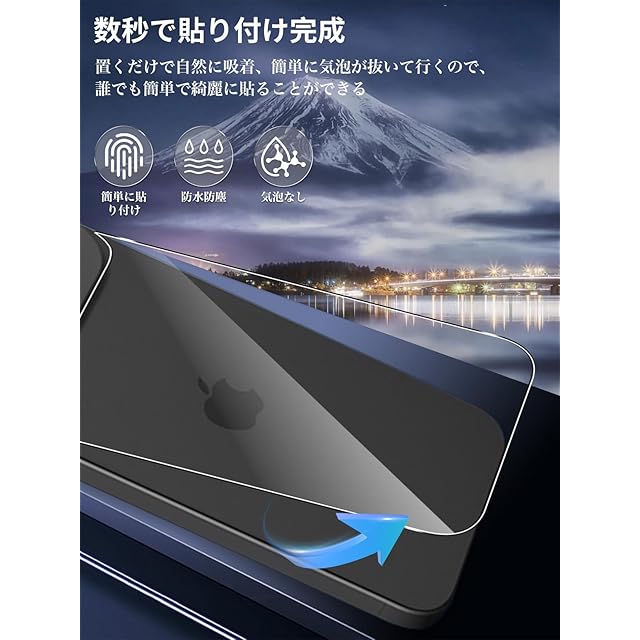 【革新的なガイド枠付き】付属のガイド枠を使用すれば、自動位置合わせと自己吸着機能で、僅か2ステップ貼り付け完成、簡単的に貼り付けます。簡単に気泡が抜いて行くので、誰でも簡単、綺麗に貼ることができます。フィルム貼りことが苦手の方でも簡単に貼る事が可能です。