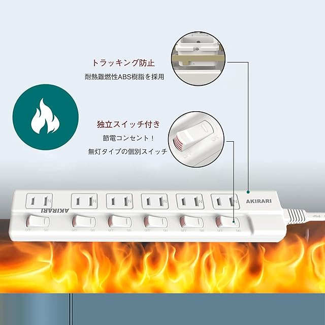 【安全性重視 日本メーカー】 6個口のシンプルなデザインで本体には耐熱性に優れたユリア樹脂を採用。さらにトラッキング防止機能もあり、火災のリスクを低減できます。
