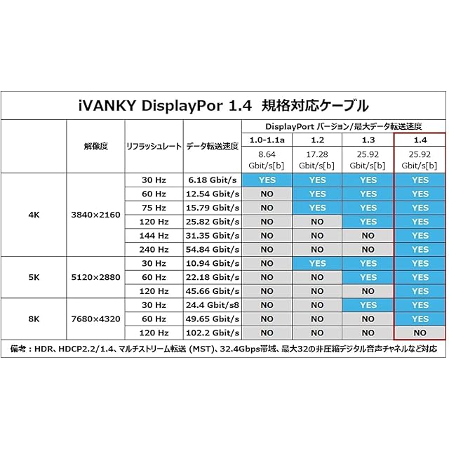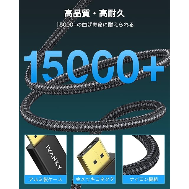 ✅【8K対応 超高解像度dpケーブル】iVANKY DisplayPort 1.4規格のディスプレイポート ケーブルが8K@60Hz/4K@144Hz/1080P@240Hzを実現。displayport ケーブル 1.4ならではのDSC技術でeスポーツも滑らかに表示。ゲーミングモニターに最適なモニターケーブルです。