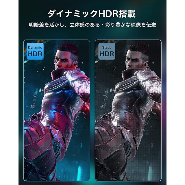 【映像・音声同期出力】1536kHz/24bit までのオーディオストリーム、240Hzリフレッシュレートに対応し、ビデオ、画像、オーディオの完璧に転送ができます。高精細な立体感、臨場感のあるゲーム環境を構築することが可能です。