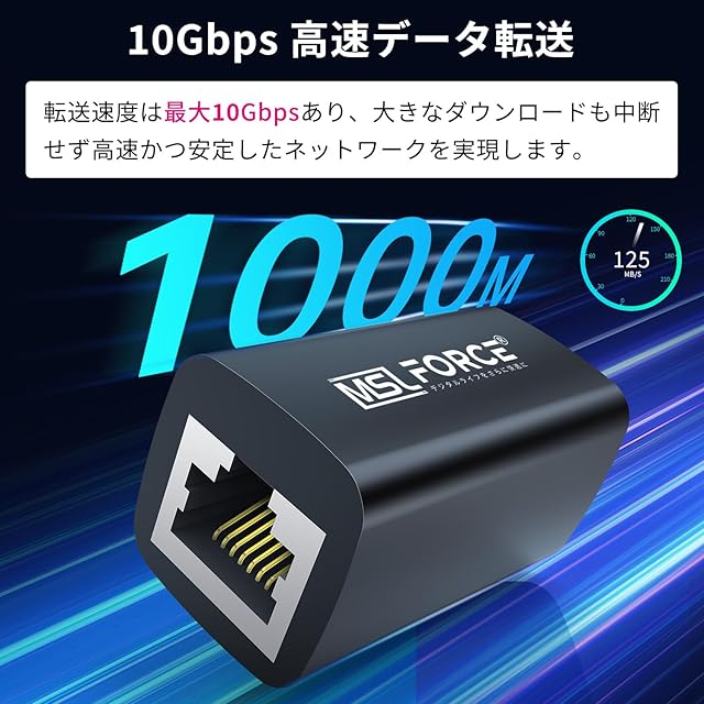【10Gbps データ転送】最大10Gbpsのデータ転送に対応、大きなダウンロードも中断せずスムーズに行うことができます。1000Mbps/100Mbps/10Mbpsの下位互換性があります。