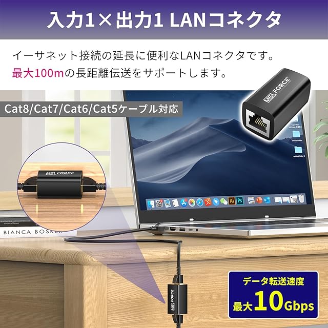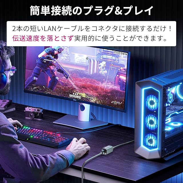 【簡単接続のプラグ&プレイ】2本の短いLANケーブルをコネクタに接続するだけ!伝送速度を落とさず1本の長いLANケーブルとして実用的に使うことができます。