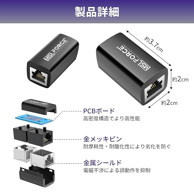 安心の日本企業 LANケーブル コネクタ 中継コネクタ LAN延長 10Gbps Cat8 Cat7 Cat6 Cat5 100M長距離 イーサネットコネクタ 金メッキ 金属シールド イーサネット延長 耐摩耗 耐酸化 rj45e (1 to 1, 1個) | つむぎ屋