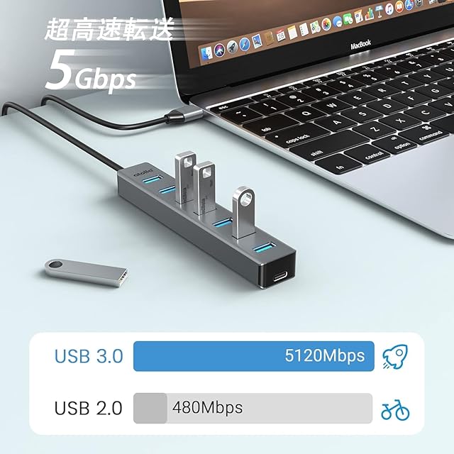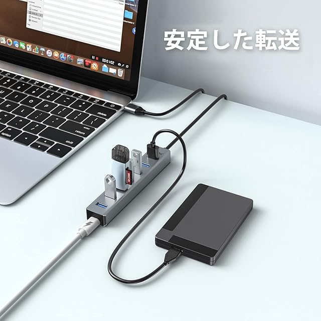 【コンパクトで耐久性】:このUSB HUBは上質なアルミニウム合金の材料から作られ、研磨過程を経て、本体の放熱性をより良くして、より耐久性、より寿命を延長します。スリムで軽量なデザインで、バッグにも簡単に収まります。