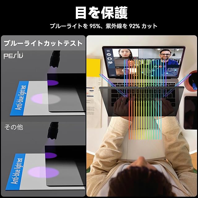 【スクリーンと目を保護】ドイツから輸入した高品質の素材とプロセスにより、磁気式MacBook Air 15インチプライバシースクリーンの性能が大幅に向上しました。高品質のフィルター層で、ブルーライトを95%、紫外線を92%カットします。マットな表面、アンチグレアで、反射光を95%効果的に遮断します。日常使用による傷を防ぐ傷防止層。視力を保護しながら画面を保護します。