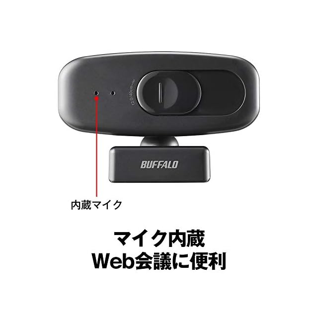 バッファロー WEB カメラ 1080P フルHD 30 fps 200 万画素 視野角 約81° Zoom/Slack/Microsoft Teams メーカー動作確認済 PC/Windows/Mac 対応 プライバシーシャッター付 マイク内蔵 小型 シンプル 日本メーカー ケーブル2m ブラック BSW305MBK | つむぎ屋