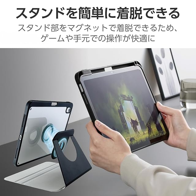 スタンド部をマグネットで簡単に分離できるため、軽量化され、ゲームや手元での操作が快適に行えます。
