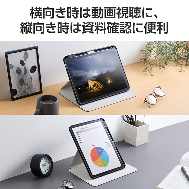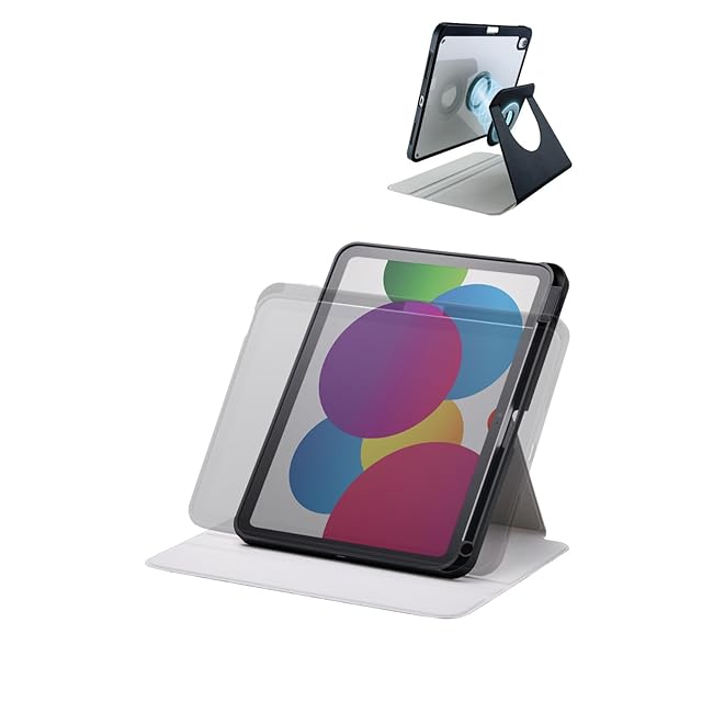 マグネットで簡単着脱。360度回転でき、縦向き、横向きのお好きな角度で使用できるiPad(A16)、iPad (第10世代 2022年モデル)用フラップケースです。