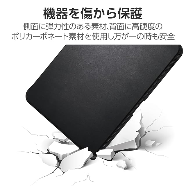 側面に弾力性のあるTPU(熱可塑性ポリウレタン)素材を、背面に指紋の付きにくい高硬度のポリカーボネート素材を使用し、機器を傷から保護します。