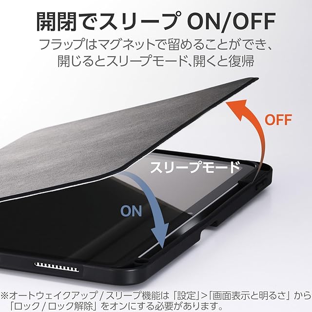 フラップカバーはマグネットでしっかり固定できます。また、オートスリープ/オートウェイクアップ機能が素早く機能します。
