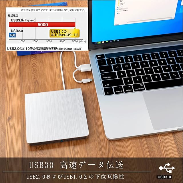 弊社のブルーレイ ドライブ外付けは、最大速度 5Gbps の高度な高速 3.0 インターフェイスを採用しており、従来の 2.0 (480Mbps) より 6 倍高速です。 またType-C (USB-C)端子ので、強力なエラー修正機能、耐衝撃性、低消費電力により、データ伝送が安定をしております。 ブルーレイドライブ外付け本体も薄くし、軽くし、また内蔵ケーブルは本体に収納できるので、アタッシュケースやカバンに入れ、持ち運びやすいです。事務やオフィス場合は、最適な弊社のブルーレイドライブ外付けをおすすめです。