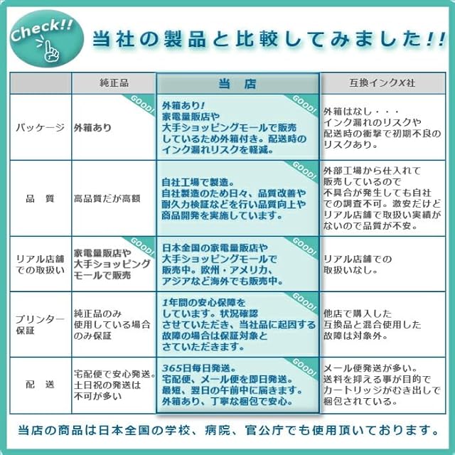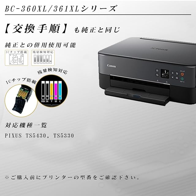 【商品特徴】 ICチップ付き残量検知可能、純正インクとの併用可能、取替え方法が純正品と同じ。