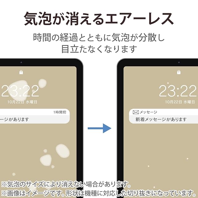 時間の経過とともに気泡が目立たなくなる特殊吸着層を採用したエアーレスタイプです。