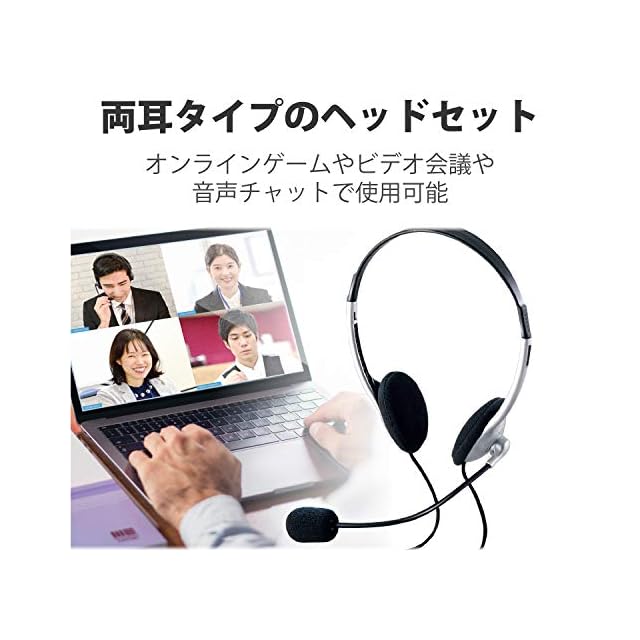 エレコム ヘッドセット USB 有線 マイク付き ヘッドホン 軽量 長時間 ウェブ会議 テレワーク 【LINE Skype windows オンラインゲームに対応】 1.8m シルバー HS-FBE01USV | つむぎ屋