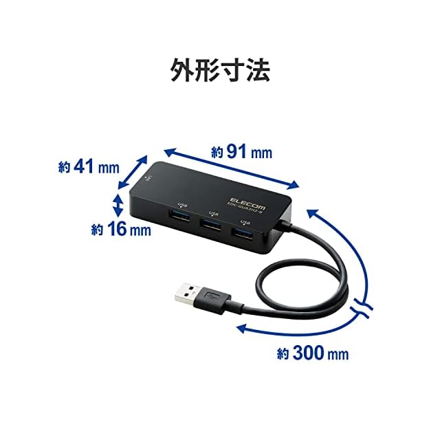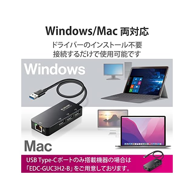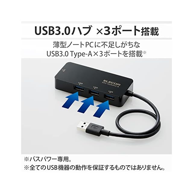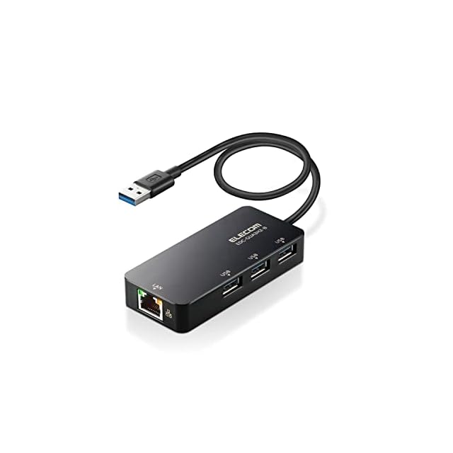 エレコム 有線LANアダプター USB3.0 USB-A USB→RJ45 変換アダプター ギガビット USBハブ (USB-A×3ポート) 【Windows 11/10/8.1、macOS 12/11/10.15対応】 ブラック EDC-GUA3H2-B | つむぎ屋
