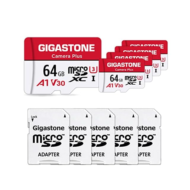 GIGASTONE マイクロSDカード 64GB UHS-I A1 V30 U3 Class 10 95MB/s microsdxc フルHD Gopro アクションカメラ スポーツカメラ 4K UHD動画 SDアダプター5枚.ミニケース5個付き | つむぎ屋