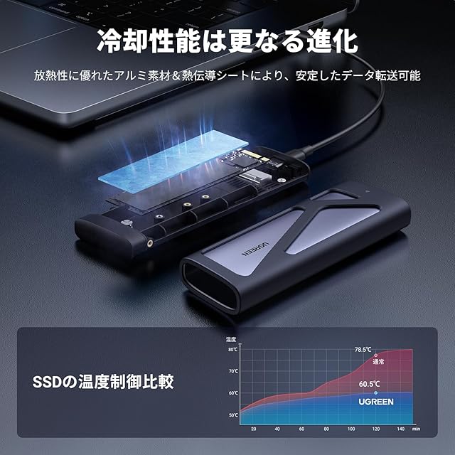 商品名:UGREEN M.2 SSD 外付けケース SSD ケース 【USB 3.2 Gen 2 10Gbps転送速度】 NVME/SATA両対応ケース シリコンケース付き 8TB大容量 2230/2242/2260/2280 M key/B+M key SSD対応 アルミ制 ssd m.2 ケース Mac OS/Android/Windows等適用