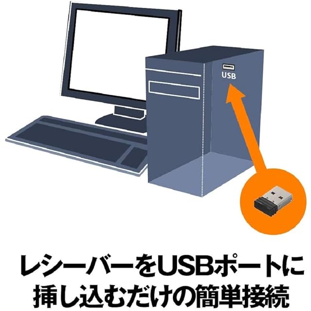 【簡単接続】レシーバーをUSBポートに挿し込むだけの簡単接続。ドライバーインストール不要、面倒な設定なし。