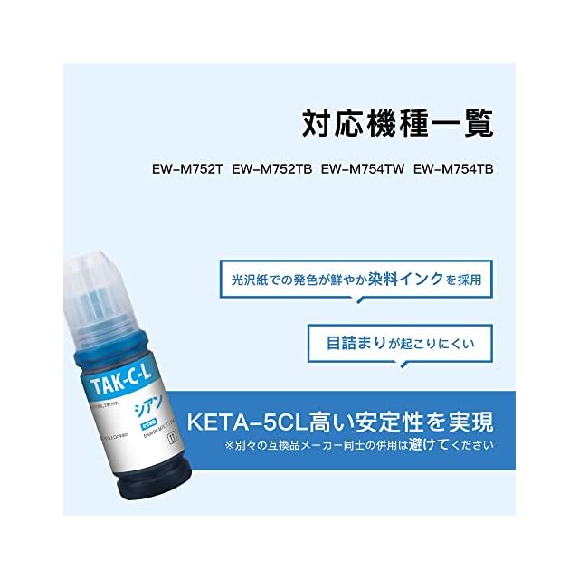 商品名:マタインク KETA-5CL エプソン用 互換インクボトル KEN-MB ケンダマ EPSON用 TAK-4CL タケトンボ インク 大容量タイプ 5色パック 対応機種:EW-M752T EW-M752TB EW-M754TW EW-M754TB EW-M757TB EW-M757TP EW-M757TW と互換性のある