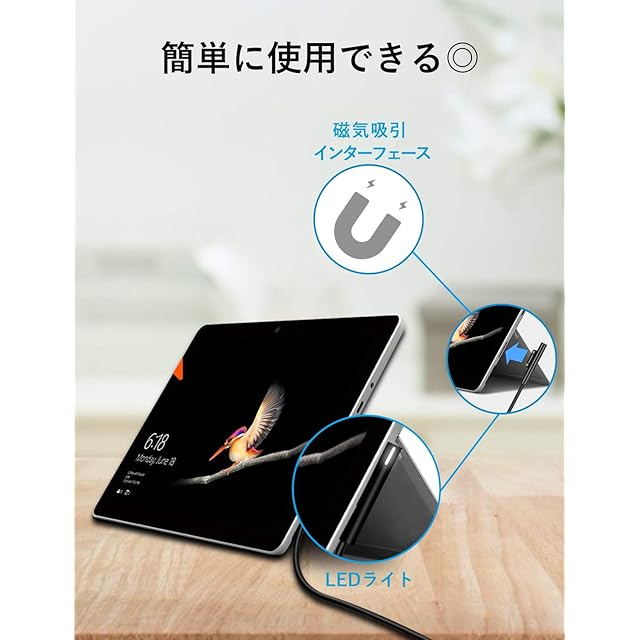 cshare 15V 2.58A Surface Book、Surface Pro 7/6/5/4/3/X Surface Go Surface Laptop タブレット Surface 充電器互換電源 44W 15V 2.58A 1800 Surface 電源アダプター 36W 12V 2.58A 1625 Surface 電源アダプター24W 15V 1.6A 1736 Surface 電源アダプター 12V/2.58A/36W、15V/1.6A /24W、15V/2.58A/44W 自動に調整する対応機種2019 Surface Pro 7/Surface Pro X 2017 Surface Pro 6/ Pro 5/ Pro 4/ Pro 3/ 2017/ m3-7Y30/ i5-7300U/ i7-7660U Surface ラップトップ/ 2017/ i5 7200U/ i7 7660U Surface Book/ 2015/ i5-6300U/ i7-6600U/ i7-6600U Surface Pro4 Tablet/ 2015/ m3-6Y30/ i5-6300U/ i7-6650U Surface Pro3 Tablet/ 2014/ i3-4020Y/ i5-4300U/ i7-4650U Surface Go / Surface Go 2 安心安全 マルチ充電保護システムより、過充電、過放電、過電流、過電圧、過熱またはショートを避け、長期間安心してご使用いただけます。LEDインジケーター付き Surface Proに特化して設計された専用磁気吸引インターフェースで、簡単に使用です。便利なLEDインジケーター機能、期待どおり充電できます。ご注意Surface 2,Surface Pro1/2,Surface RT, 及びPro 4 Intel Core M3には適用できません。使用中に何か不具合点がある場合に、こちらへお気軽にお問い合わせください。仕様入力(AC):100V〜240V 50 / 60Hz 出力(DC):DC 15V 2.58A ケーブル長:1.5m + 1m パッケージ内容 Surface 電源アダプター AC電源コード