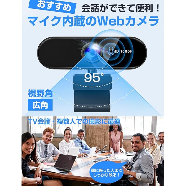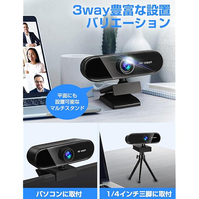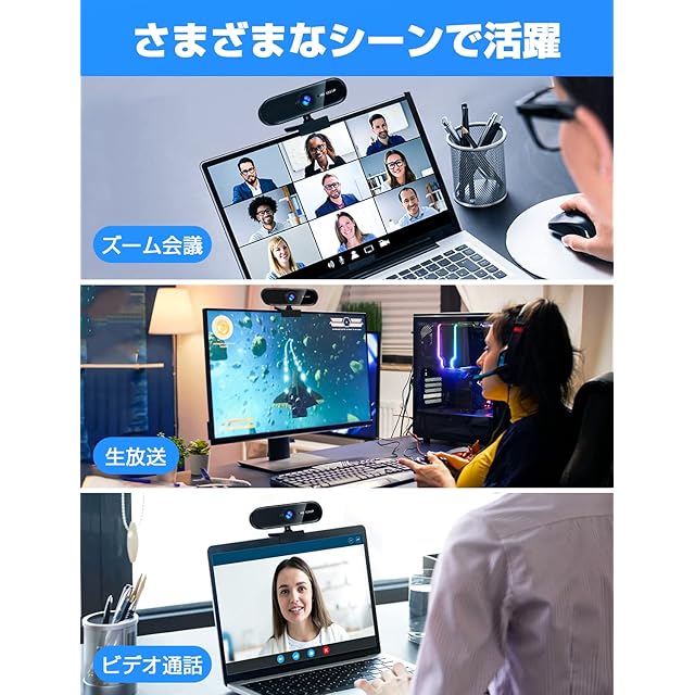 商品名:Webカメラ ウェブカメラ フルHD 1080P 【2025年アップグレード版】 高性能 200万画素 マイク内蔵 USB 挿すだけですぐ使える 自動光補正 超広角95° クリップ/スタンド式 三脚対応 外付けwebcam PCカメラ 幅広い互換性 ZOOM/SKYPE/WEB会議/ビデオ通話/テレワーク パソコン Windows Mac Chrome 日本語説明書付き