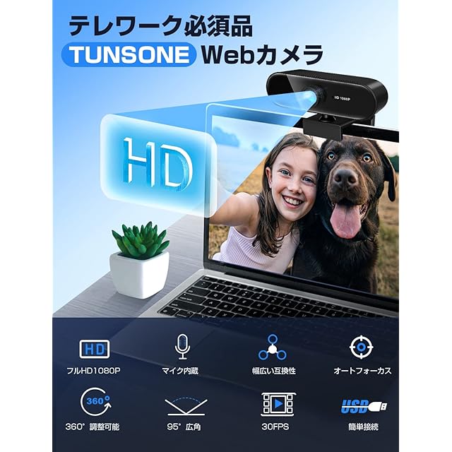 ✨【優れたオーディオ体験をあなたへ】PCについているウェブカメラは解像度が低いため、室内だと暗い印象で写りがちですが、今回発売されたTUNSONEのWebカメラは、色調や露出の補正に優れた自動光補正機能が対応。さらに抜群の高感度と色再現性を実現する日本メーカー製の裏面照射型CMOSセンサーと、多くの光量をとらえるf/2.0絞り値レンズを搭載し、通常のWebカメラよりも細かい所が隅々まで再現できます。【優れた放送を実現】ピントを被写体に自動的に合わせる機能により、遠景はもちろん近距離の文字にも自動的にピントが合い、くっきりと鮮明な画像をお楽しみいただけます。