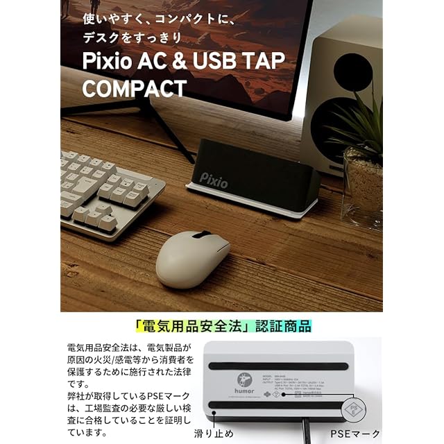 商品名:Pixio AC&USB TAP COMPACT 電源タップ 卓上 コンセント USB Type-C Type-A 充電ステーション ACアダプタ 急速充電 コンパクト スマホ iPhone スタンド機能 延長コード USB充電器 おしゃれ デスク インテリア ゲーミング