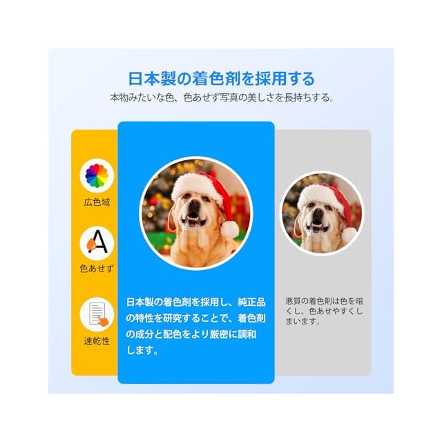 【製品特徴】:プリンターインク ブラザー 用 LC411 は残量表示され、完全可溶性・分子級・染料インクを採用、分子径はわずか0.15nmであり、目詰まりにくく、かすれることがなく、色再現性が強く、印刷物の色が鮮やかになります。