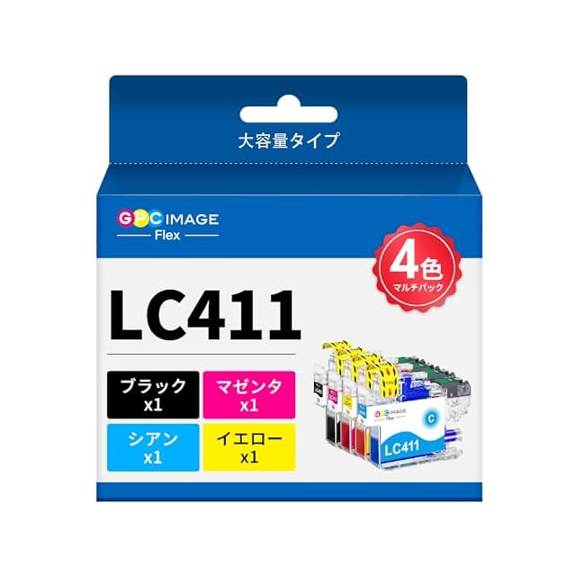 GPC Image Flex ブラザー 用 インク LC411 純正 と併用可能 LC411 LC411-4PK 4色セット 大容量タイプ brother 対応 インクカートリッジ LC411 LC411BK DCP-J926N MFC-J904N MFC-J739DN MFC-J939DN 互換インク 番号区別は不要 【新・旧パッケージ任意】 | つむぎ屋