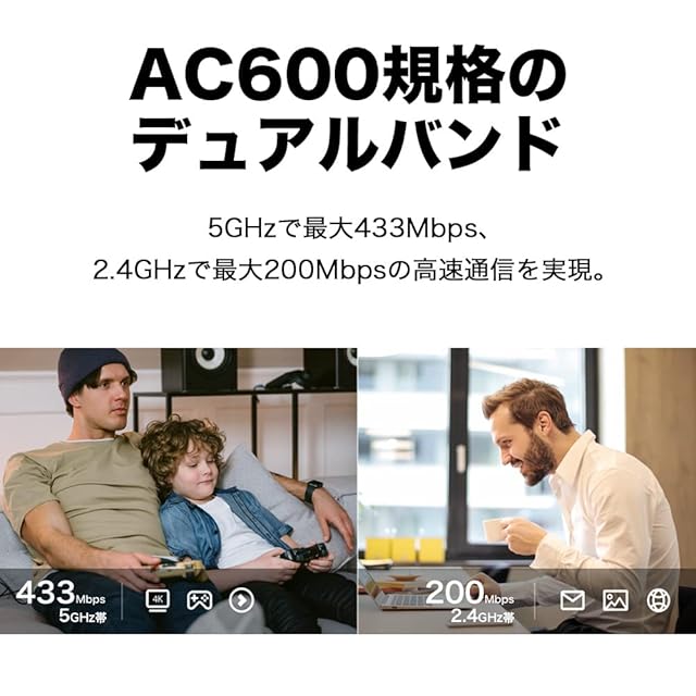 [Wi-Fi規格] AC600規格 5GHz: 433Mbps , 2.4GHz: 200Mbps